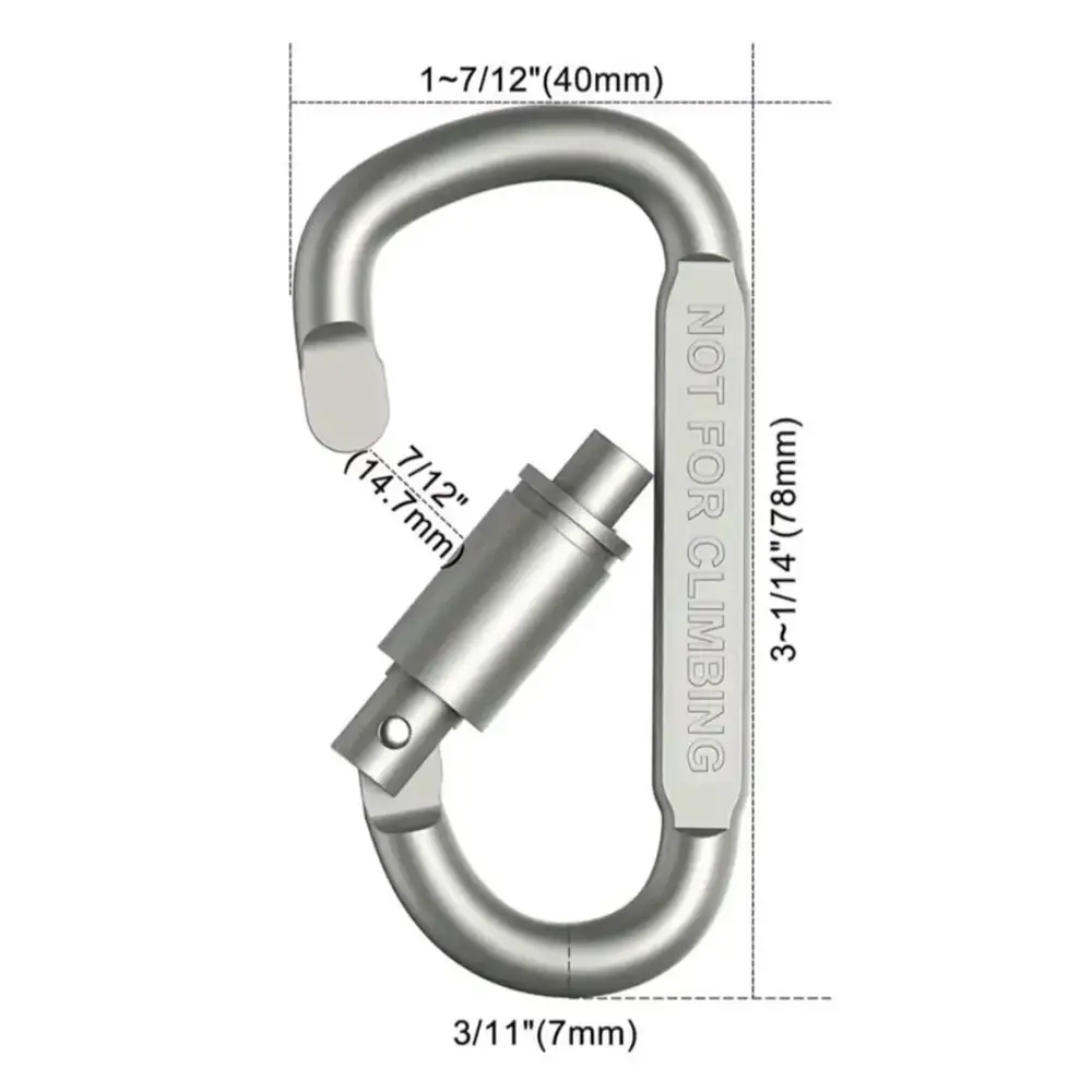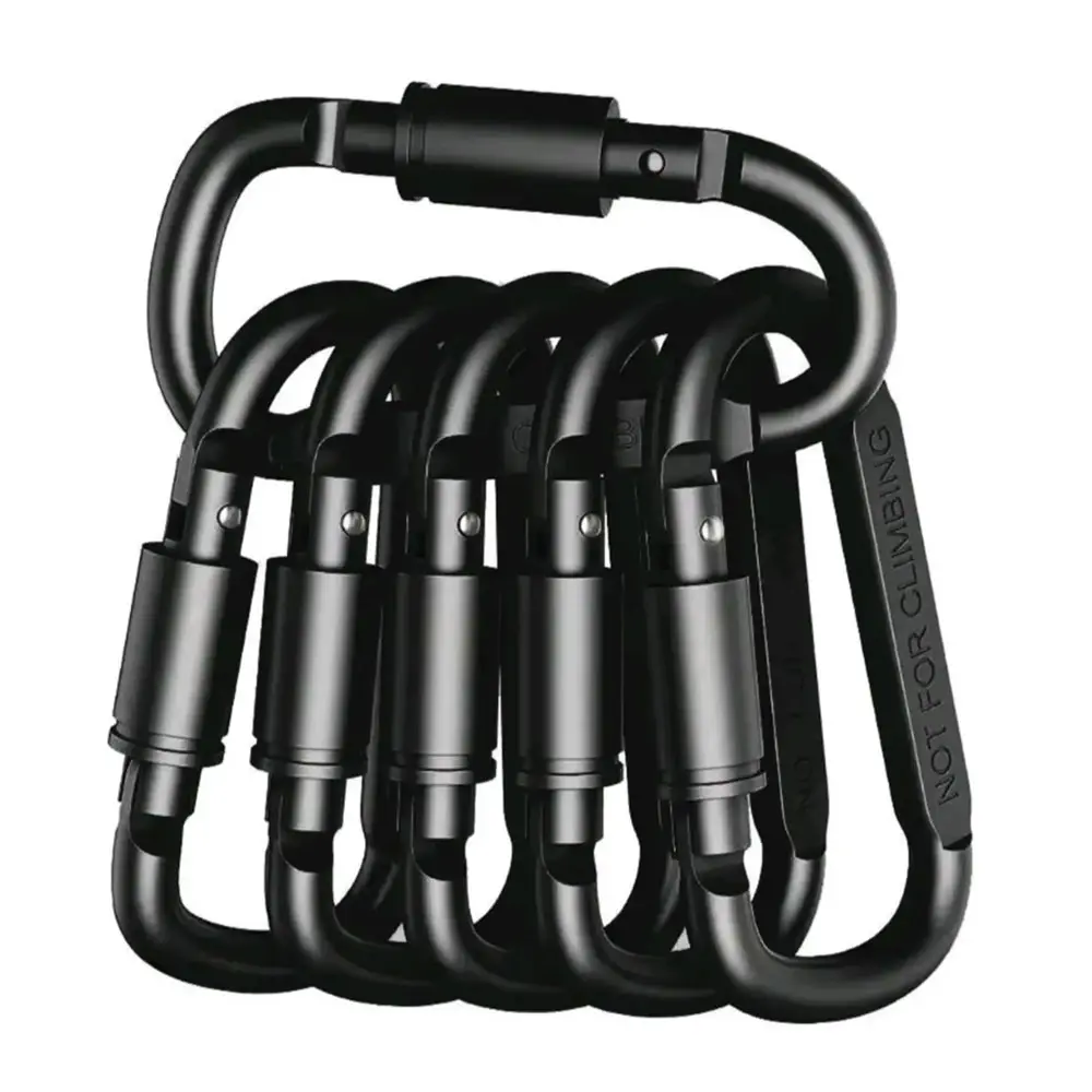 Універсальні карабіни з гвинтовим замком — ідеальне рішення для щоденного використання в побуті, туризмі, на рибалці чи при організації спорядження. Виготовлені з легкого та міцного алюмінієвого сплаву, забезпечують надійне кріплення предметів. Оснащені гвинтовим замком для запобігання випадковому роз’єднанню. Набір містить 5 штук.