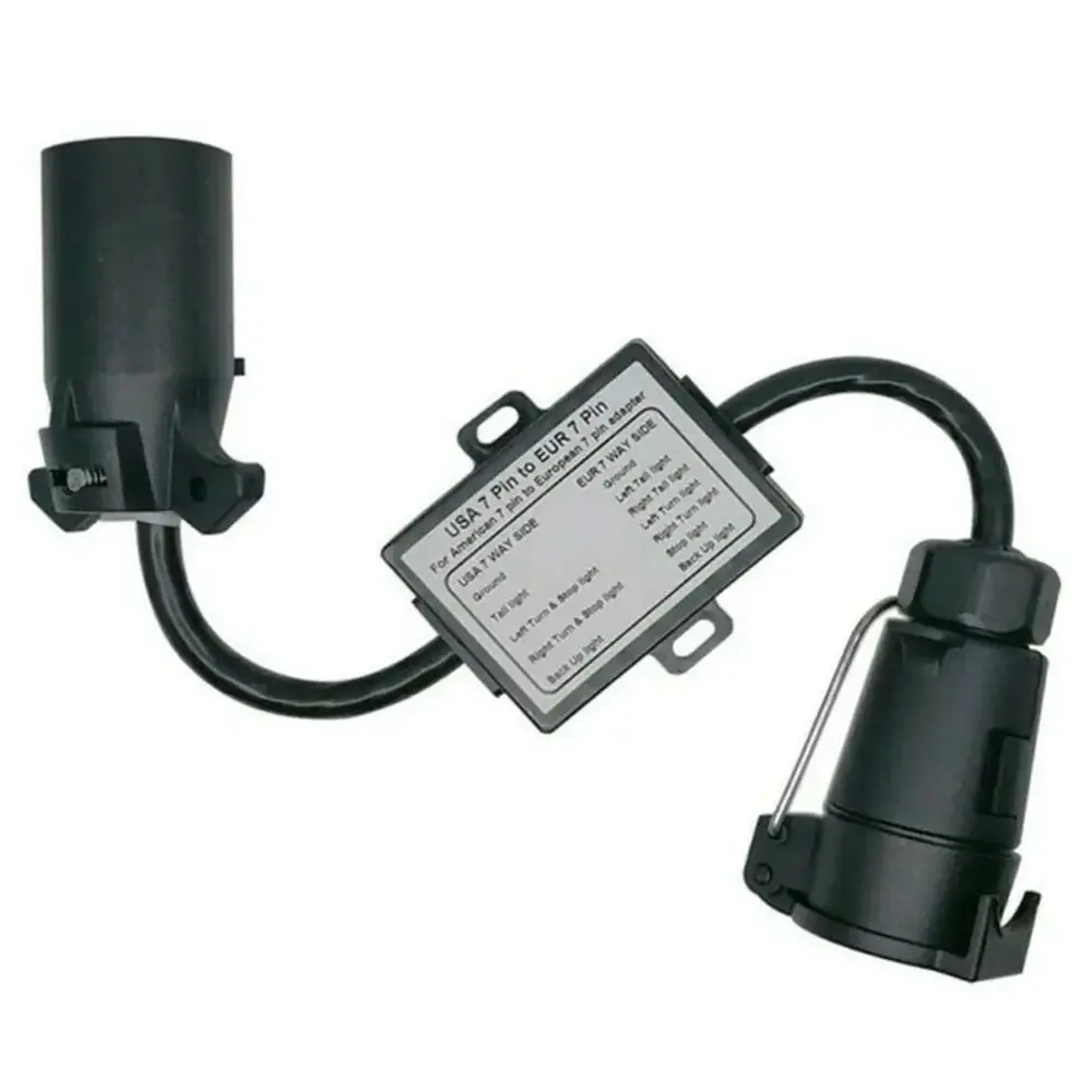 Цей адаптер дозволяє підключати причіп із 7-контактним роз’ємом до автомобіля з 7-контактним роз’ємом за американським стандартом.