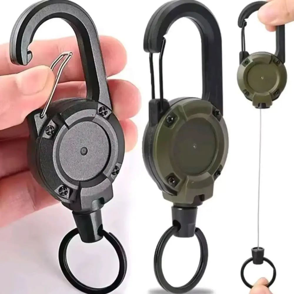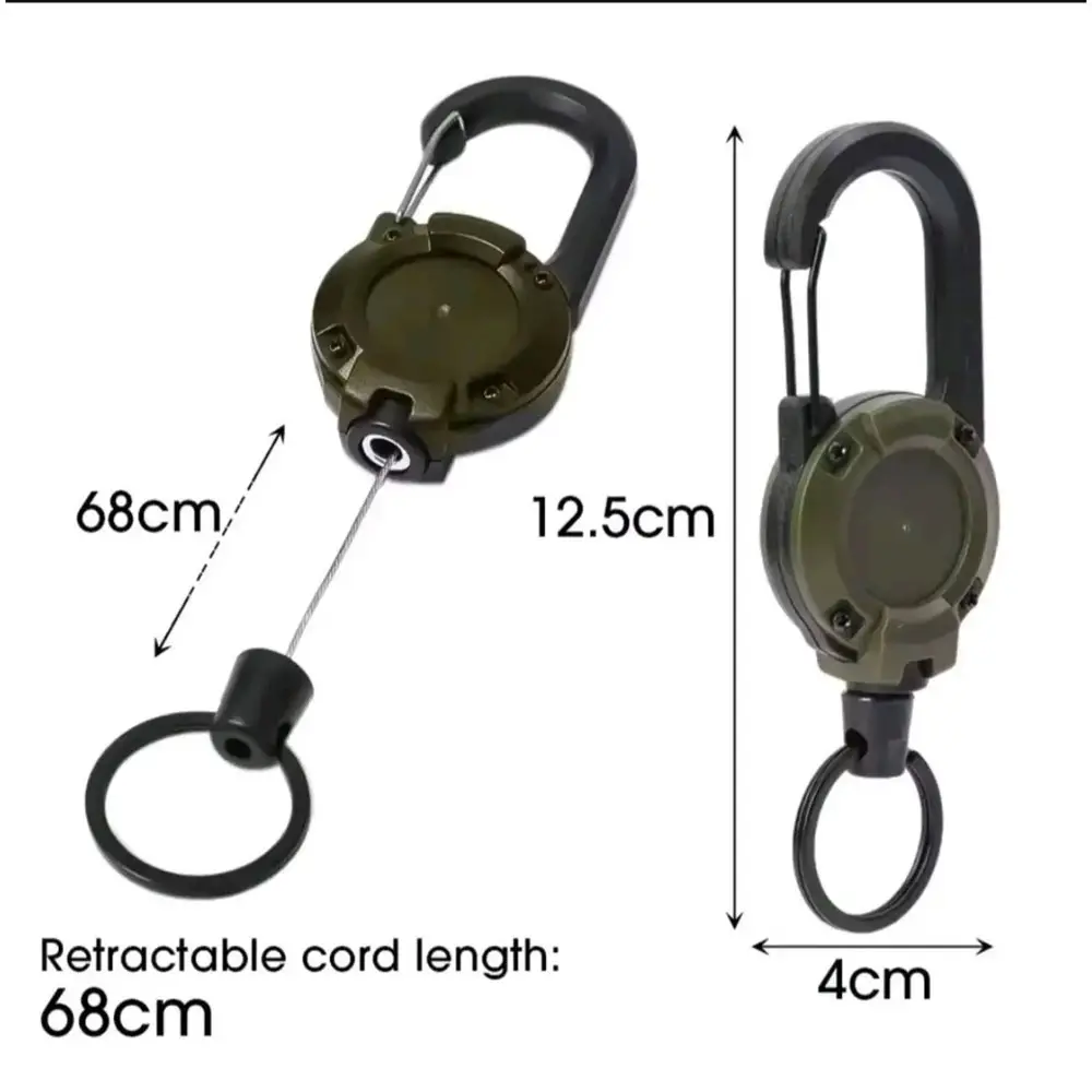 Практичний ретрактор з карабіном — зручний аксесуар для кріплення ключів, інструментів, ID-карток, бейджів, риболовних аксесуарів, ножів, кліщів тощо. Оснащений міцним витяжним тросом довжиною до 68 см, що дозволяє легко користуватись підвісом без від’єднання.