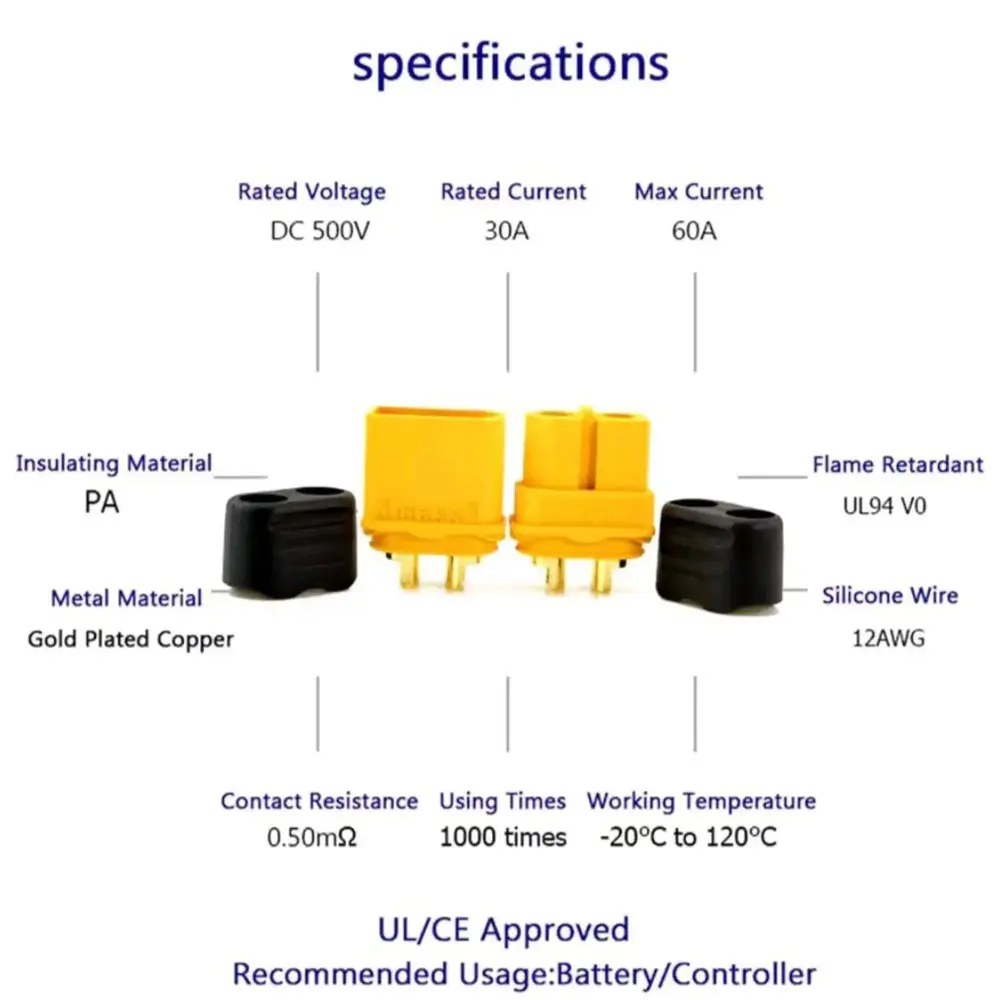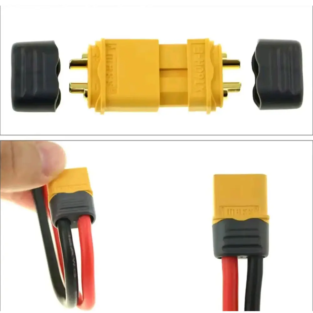 Роз’єм XT60H-M (Male + Female) з кришками – надійне рішення для безпечного та ефективного підключення акумуляторів у моделізмі та електроніці.