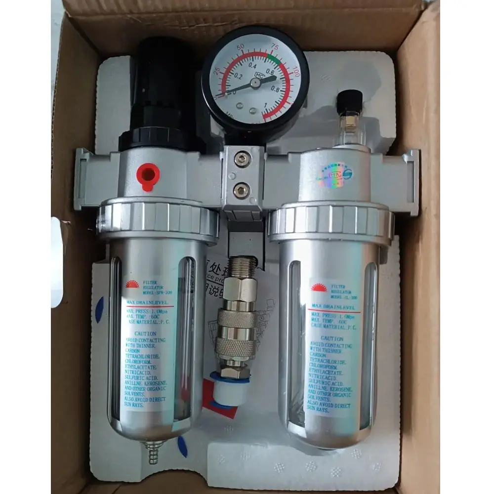 Блок підготовки повітря SFC300 – ефективне рішення для очищення, регулювання тиску та змащування стисненого повітря в пневматичних інструментах і системах. Ідеально підходить для використання у виробництві, майстернях, автосервісах та інших галузях.