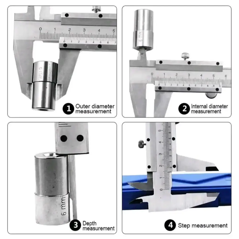 Металевий штангенциркуль 150 мм професійний вимірювальний інструмент, призначений для високоточних вимірів зовнішніх, внутрішніх та глибинних параметрів деталей. Виготовлений із нержавіючої сталі, він гарантує довговічність, зносостійкість та надійність у використанні. Ідеально підходить для інженерних, механічних, слюсарних та технічних робіт, а також для FPV-моделювання та точного хобі.