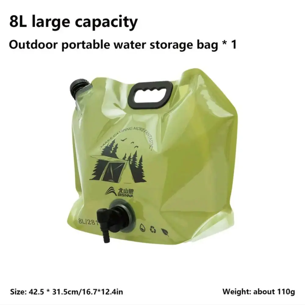 Складна ємність для води BISINNA 8 л – ідеальне рішення для кемпінгу, риболовлі, пікніка чи подорожей. Легка та міцна сумка виготовлена з якісного харчового пластику, не має стороннього запаху та безпечна для зберігання питної води. Оснащена зручними ручками для перенесення та краном для легкого наливання.