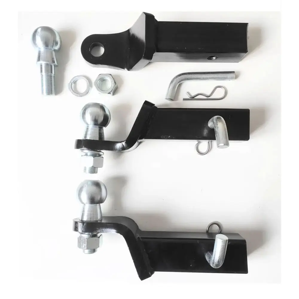 Надійний набір зчіпних елементів для фаркопа, що включає кульові з’єднання, кронштейни з посадковим отвором та монтажні шплінти. Призначений для встановлення на автомобілі, пікапи та позашляховики з прямокутним приймачем (стандарт hitch receiver). Ідеально підходить для буксирування причепів, трейлерів, кемперів тощо.