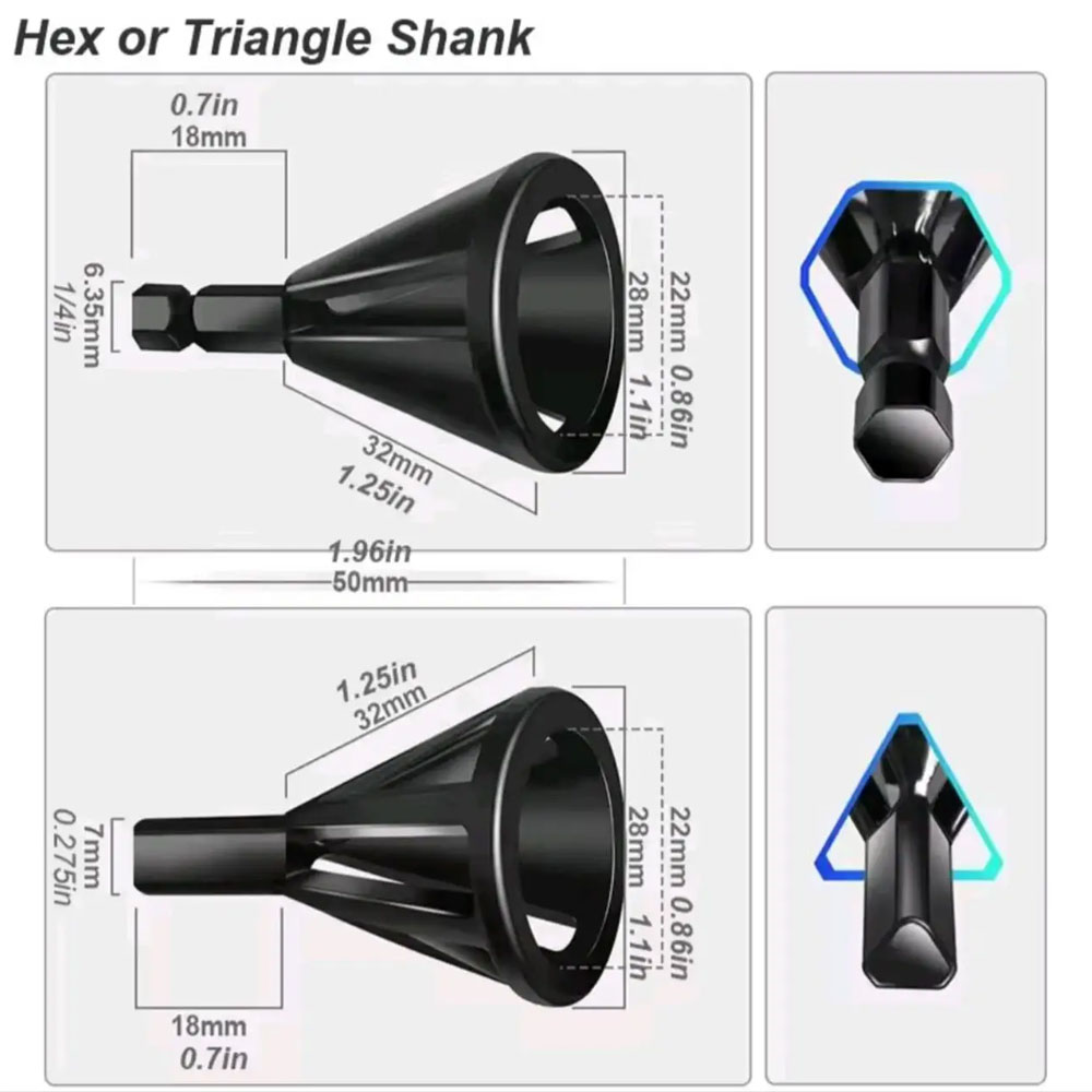 Зенкер для фасок та зачищення країв труб/болтів з тригранним хвостовиком