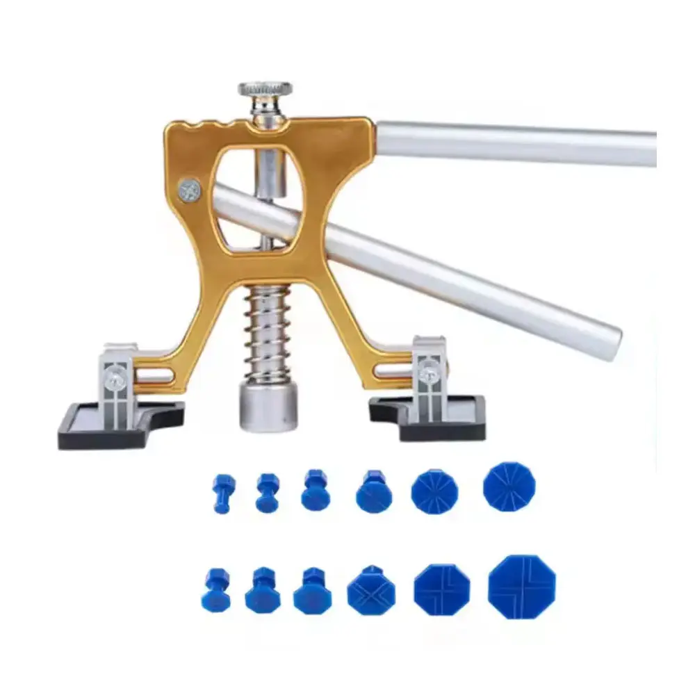 Професійний інструмент для безфарбового ремонту кузова автомобіля. Оснащений міцною металевою конструкцією з ергономічною ручкою для зручного використання. У комплекті – набір змінних насадок різної форми і розміру для роботи з різними типами вм’ятин. Ідеально підходить для СТО, автомайстерень та домашнього використання.